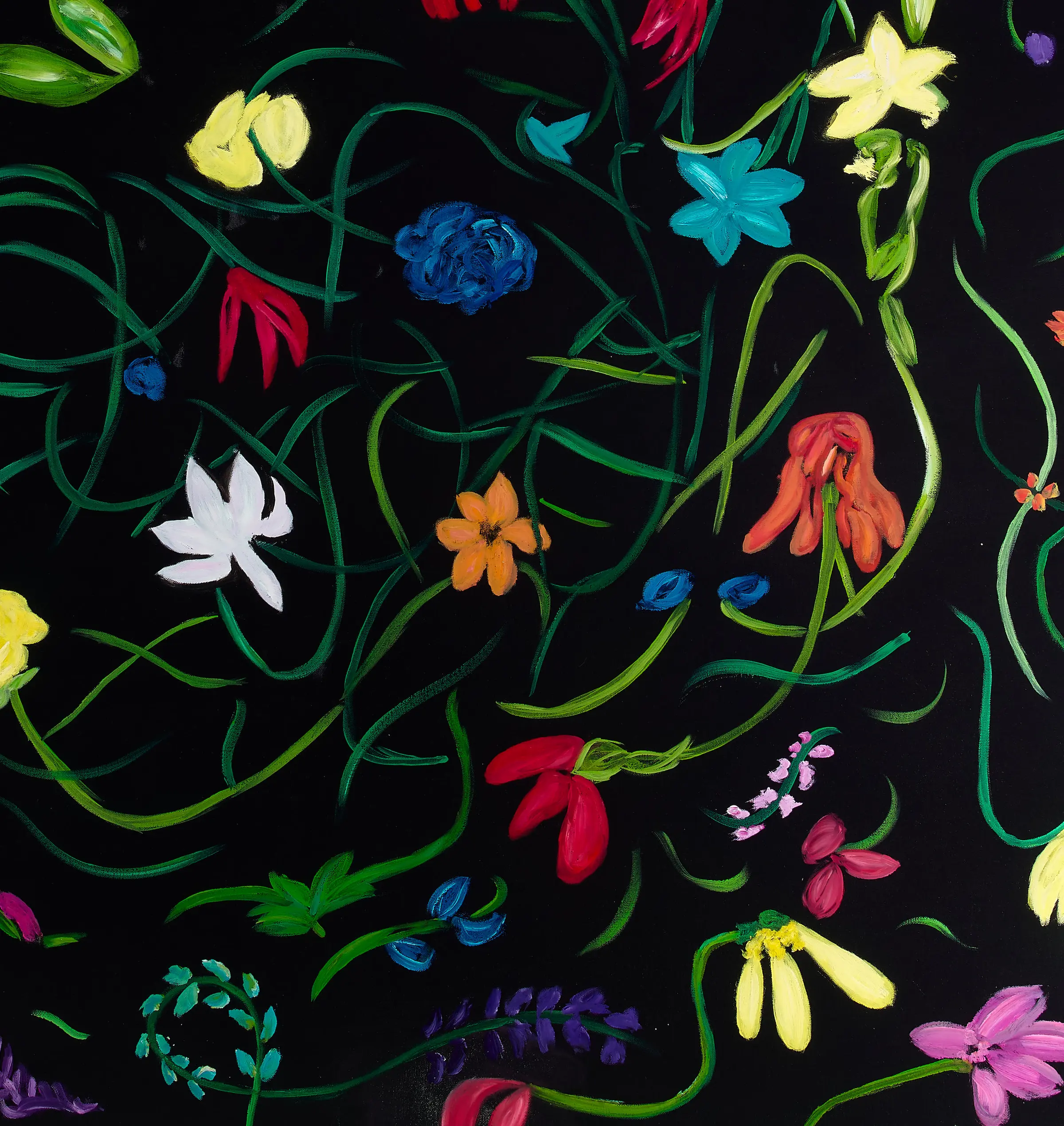 Suggested Image: A close-up shot of one of her abstract paintings showing layered brush textures.